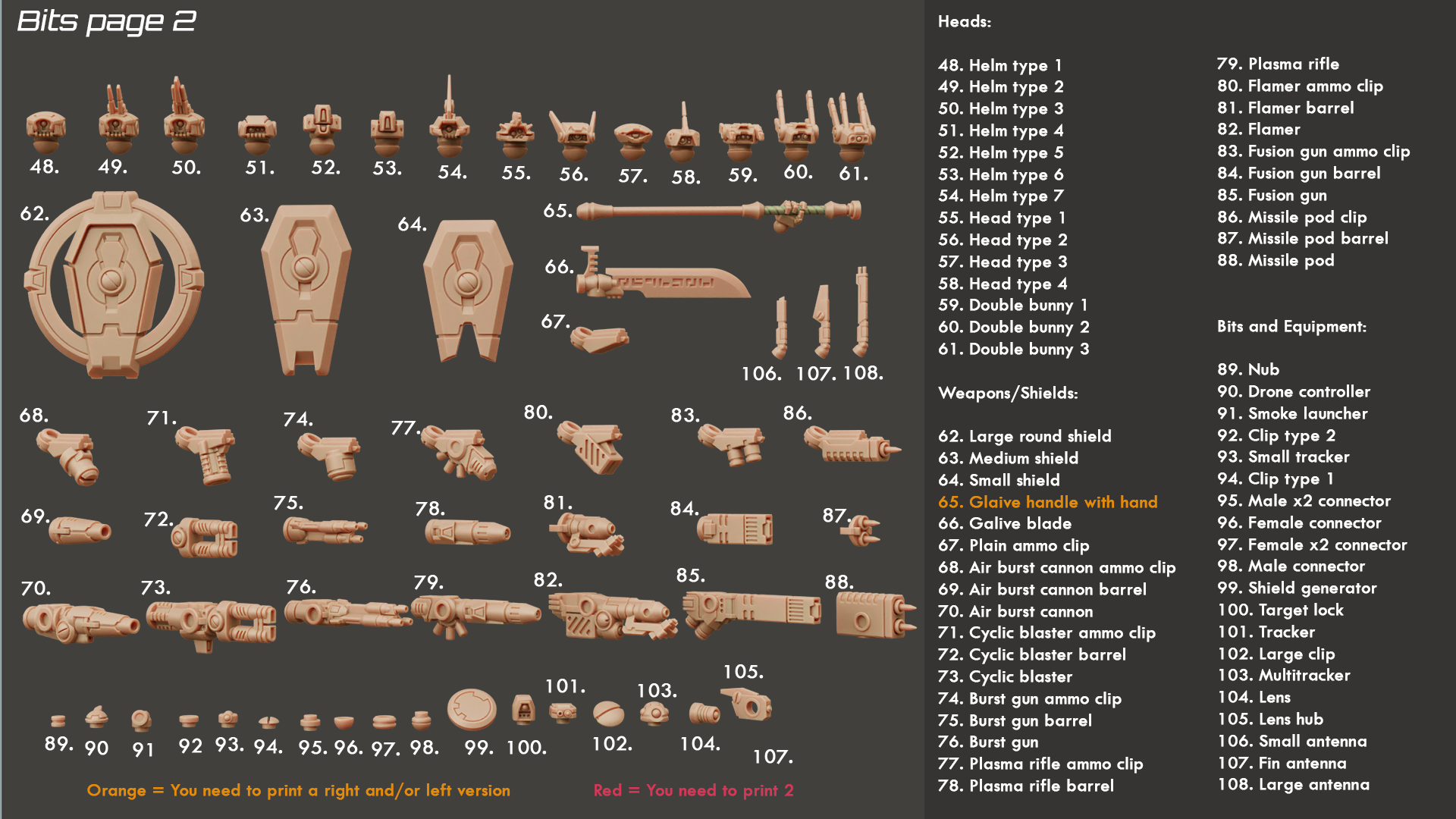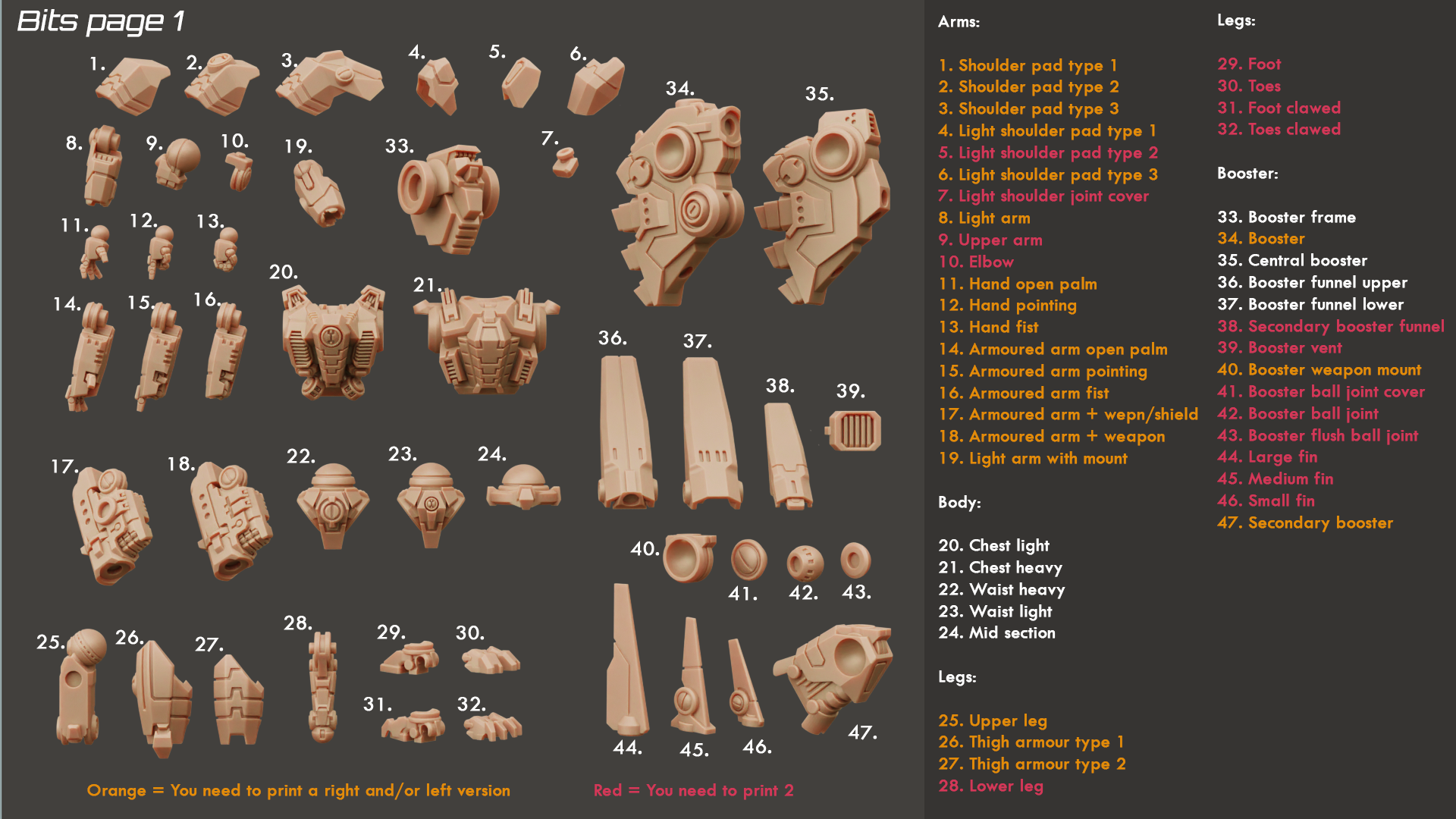 The kit contains enough parts to build 2 Full suits with the following parts